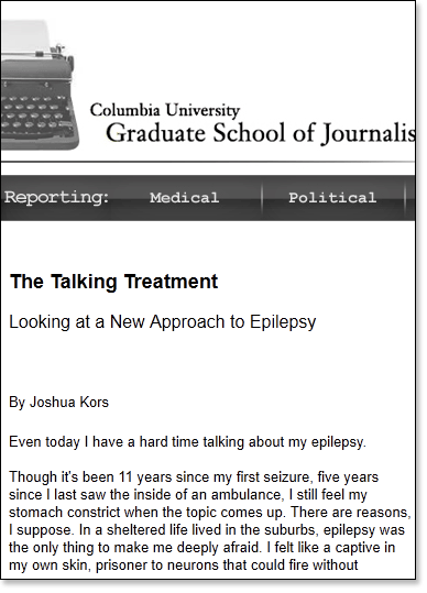 "The Talking Treatment," a first-person piece by investigative reporter Joshua